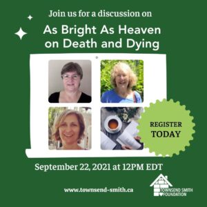 Tish, Shona, and Janine all have experience in palliative care, and bring their knowledge to a book club-like discussion about the many ways death affects individuals, families, neighbourhoods, and the larger society around them. Guests will be able to participate in a general conversation moderated by TSF Board Secretary Holly Lillico.